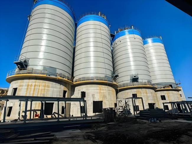 施工阶段需严格把控材料质量与工序精度。钢板选材需适配骨料存储的高强度需求,容积 5000m³ 以下仓体选用 Q355B 钢板,厚度 6-8mm;5000m³ 以上选用 Q390B 钢板,厚度 8-12mm,所有钢板表面需做抛丸除锈处理,再涂刷两道环氧富锌底漆(干膜厚度≥80μm),增强抗腐蚀能力。卷板施工采用数控螺旋卷板机,卷制速度控制在 1-1.5m/min,仓壁垂直度误差≤1‰,每卷制 6 圈需用激光测圆仪校正圆度,偏差不得超过直径的 0.4%;基础施工中,预埋螺栓位置偏差≤2mm,螺栓外露长度按设计预留 60-80mm,且套丝部分涂抹防锈脂保护。